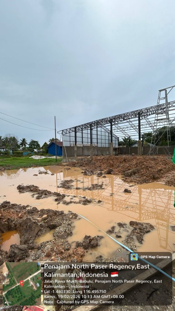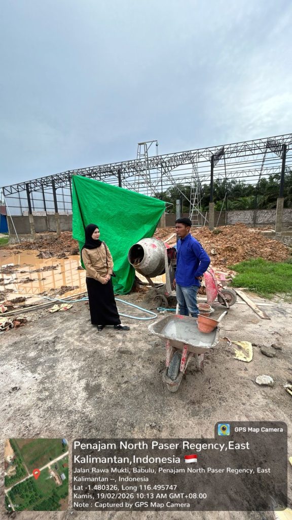 PENAJAM – Dinas KUKM Perindag meninjau langsung progres pembangunan gerai koperasi di KDMP Labangka Barat, Kamis (19/2). Petugas pelapor, Yana, mendampingi pengurus koperasi untuk mengevaluasi fisik bangunan yang mulai berjalan sejak Desember 2025 lalu.