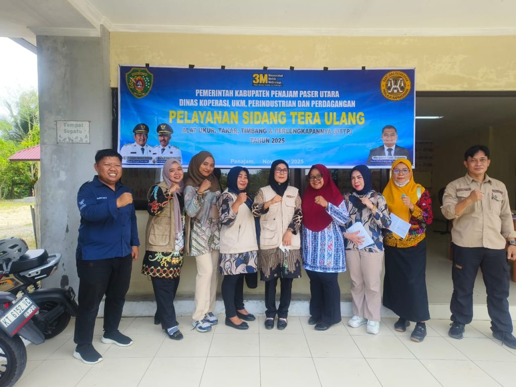 Penajam — Dinas Koperasi, UKM, Perindustrian dan Perdagangan Kabupaten Penajam Paser Utara melaksanakan kegiatan Tera Ulang Alat Ukur, Takar, Timbang,