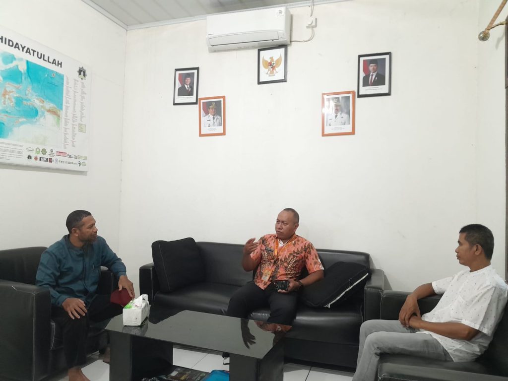 PENAJAM – Petugas Dinas KUKM Perindag membina Kopontren Hidayatullah pada Kamis (15/1). Yuda dan Yana membantu pengurus mengaktifkan kembali koperasi yang