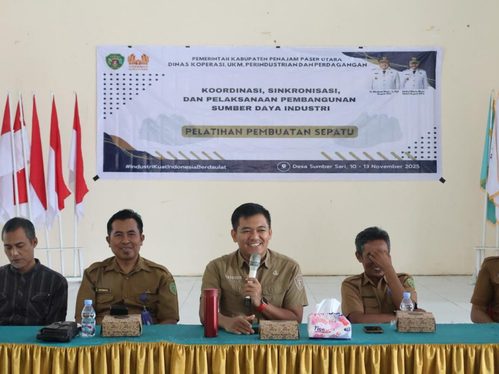 Kepala Dinas Koperasi, UKM, Perindustrian dan Perdagangan Kabupaten Penajam Paser Utara Bapak Margono Hadi Sutanto, SSTP, M.I.Kom membuka langsung kegiatan Koordinasi, Sinkronisasi, dan Pelaksanaan Pembangunan Sumber Daya Industri Pelatihan Pembuatan Sepatu yang dilaksanakan di Gedung Serbaguna Desa Sumber Sari, Kecamatan Babulu. Kegiatan ini dihadiri juga Camat Babulu (diwakili), Kepala Desa Sumber Sari, Ketua Dekranasda diwakili oleh Ketua Komite Ekraf PPU, Dinas Sosial, Narasumber Pelatihan Sepatu, serta masyarakat peserta pelatihan. Dengan keterampilan baru ini, masyarakat diharapkan mampu menciptakan produk unggulan bernilai jual tinggi dan memperkuat ekonomi desa.