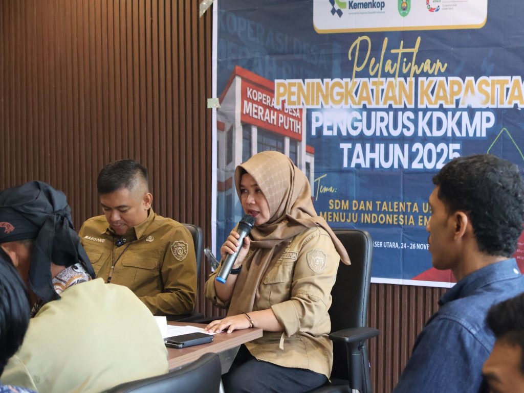 Kepala Dinas Koperasi, UKM, Perindustrian dan Perdagangan secara resmi membuka langsung kegiatan pelatihan peningkatan kapasitas Koperasi Desa/ Kelurahan Merah Putih (KDKMP) di wilayah Kecamatan Sepaku. Kegiatan ini berlangsung selama 3 hari mulai tanggal 24-26 November 2025 di Ruang Eselon I Lt. II Tower 3 Kementerian koordinat (KEMENKO) 4 Ibu Kota Nusantara.